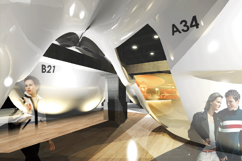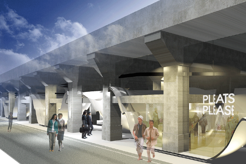 秋葉原駅前のJRの高架下の敷地4500㎡の再開発の計画である。ここではフーリエ変換によって音楽のデータをサインウェーブに変換して立体的なパターンをもつ人工地盤をつくり、膨らんだ部分には歩行者用通路、へこんだ部分には様々な小型の店舗が収まる。